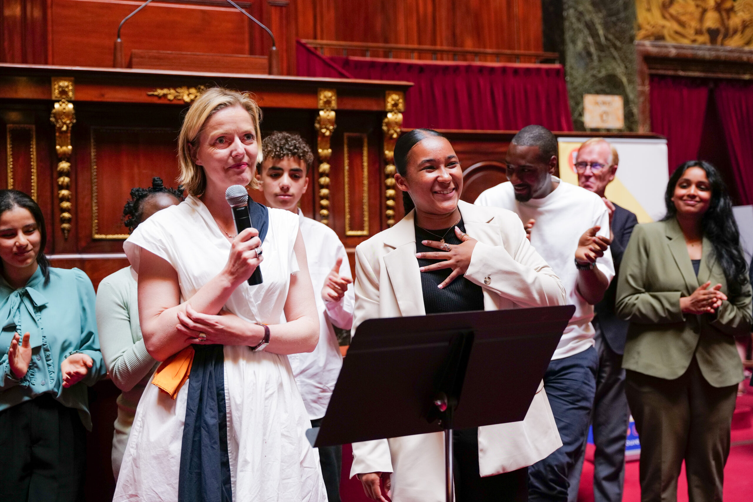Quand la voix des jeunes résonne au Panthéon Ce mardi 7 juin, s’est déroulée la finale interacadémique de notre concours d’éloquence lycéen au Panthéon !  Présentée par virginie GUILHAUME, cette soirée marquait la conclusion d’une aventure qui a réuni cette année 1500 élèves de 2nde de 22 établissements prioritaires des académies de Paris, Versailles et Créteil.  Parmi ces 1 500 jeunes, tous ont pris la parole devant leur classe en fin de cycle de formation, 170 ont participé au concours de leur lycée, 22 sont parvenus jusqu’en finale académique et 6 d’entre eux se sont hissés jusqu’aux marches du Panthéon : Clara, Zakaria, Vancy, Marko, Moina et Miliana.  À l’occasion de cette ultime étape, chacun d’eux a prononcé un discours portant sur la question suivante : « Quels héros et héroïnes pour notre temps ? »  En réponse, nos six finalistes n’ont pas hésité à imprégner leurs propos d’une touche de